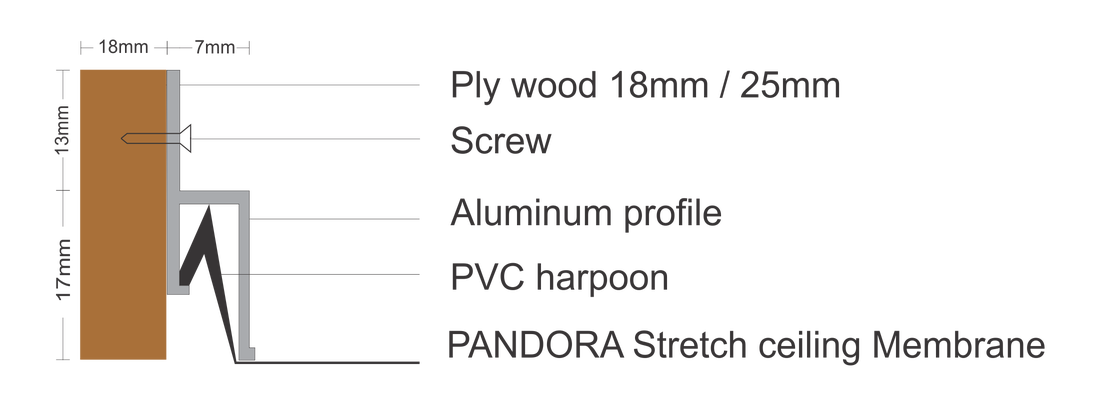 PANDORA is an international quality Stretch Ceiling system in INDIA. PANDORA brand includes the full set of products which allow to realized any ideas in the stretch ceiling sphere from classic interior to sophisticated design product. The stretch ceiling is a modern and a high-tech way of the ceiling finishing which can realize any design ideas. PANDORA offers a high-quality PVC film and the additional components for ceiling installation. Stretch Ceiling… What is it ? PANDORA The Stretch ceiling is a thin but very strong PVC film stretched on the specially mounted frame. Stretched by heating with a hot air blower. Locked to proprietary PVC profiles fixed on the periphery of walls.